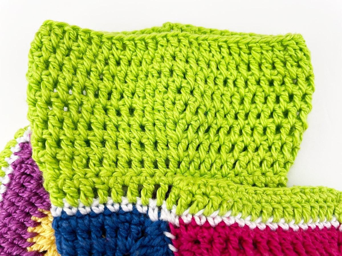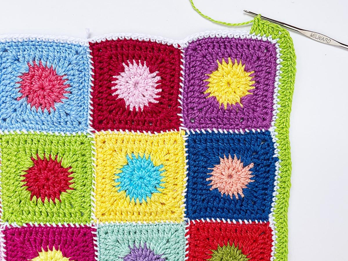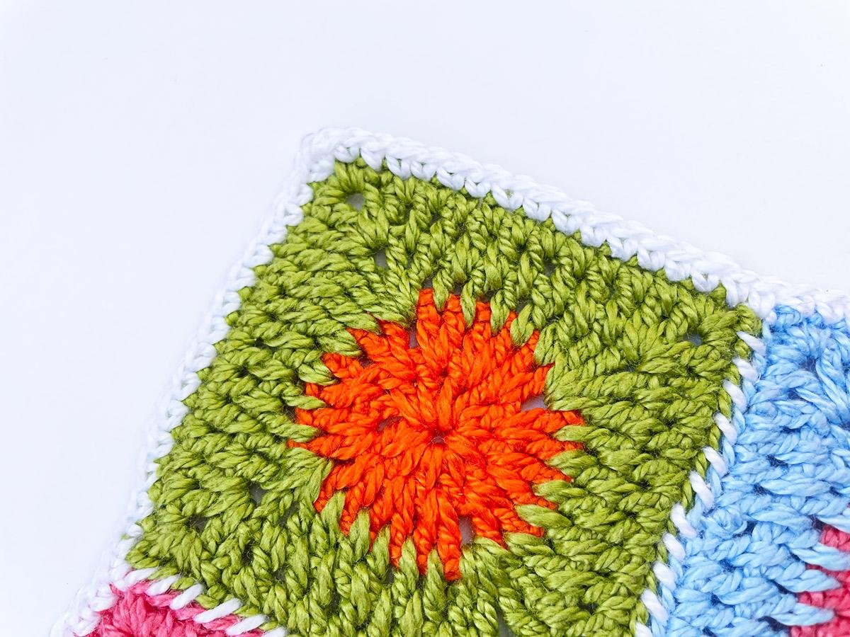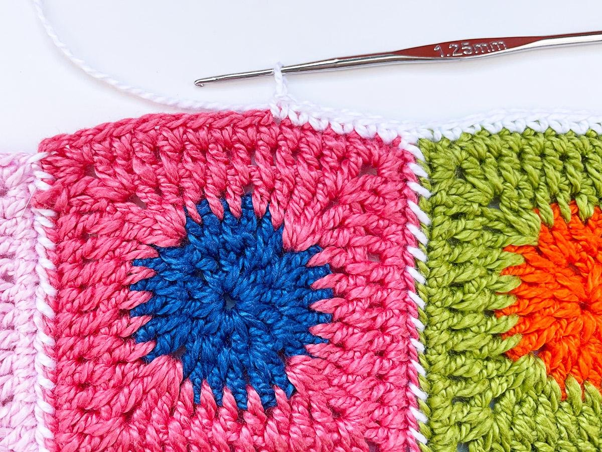 Com uma linha de crochê branca e uma agulha sem ponta, junte os quadrados com uma costura.