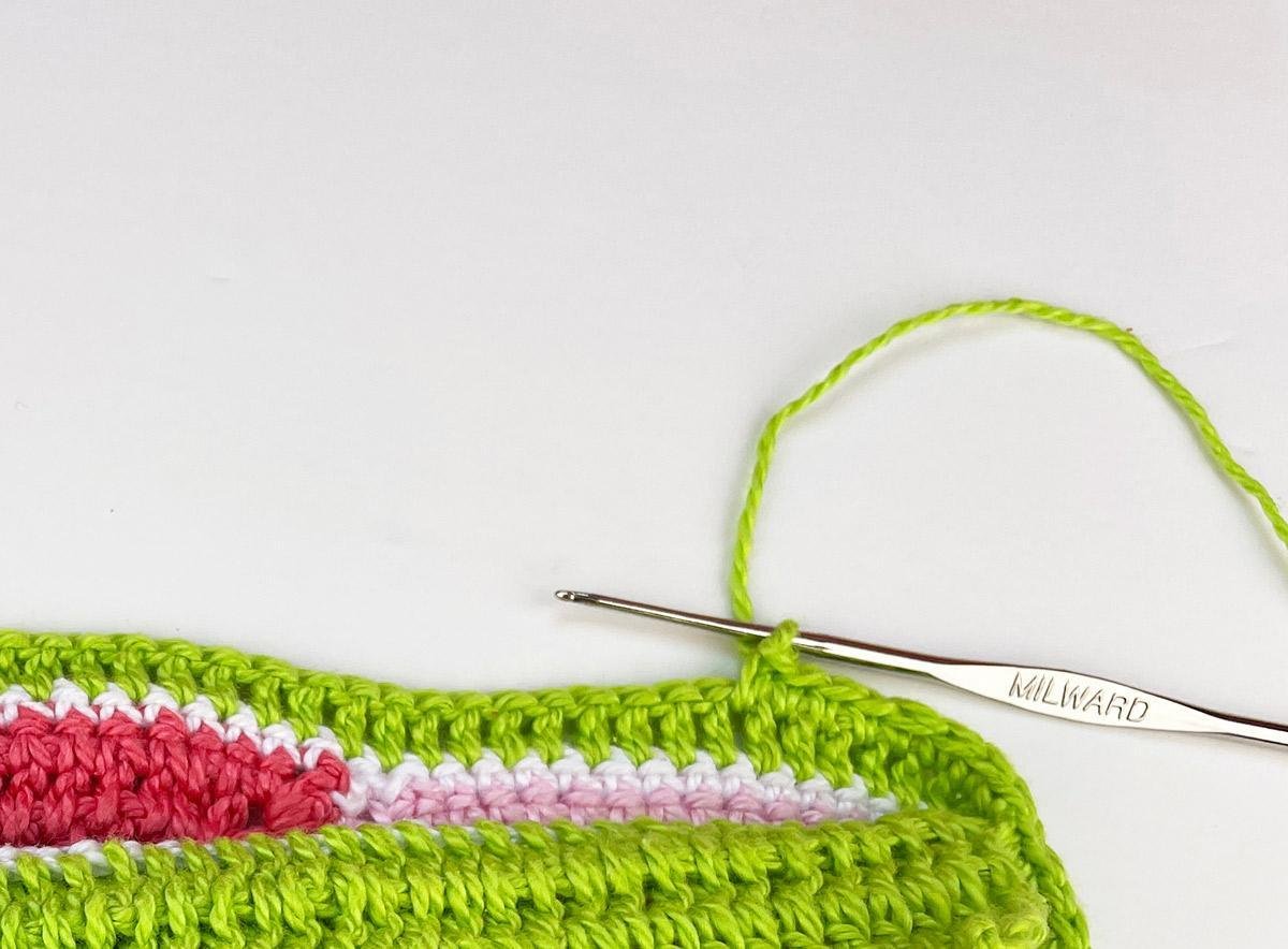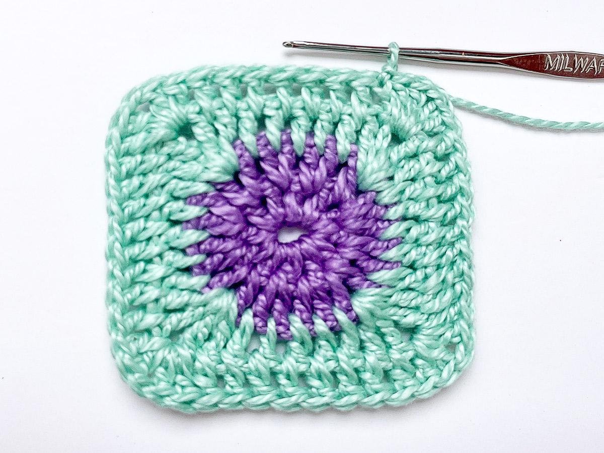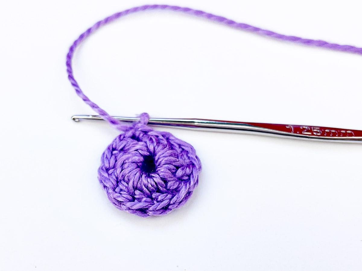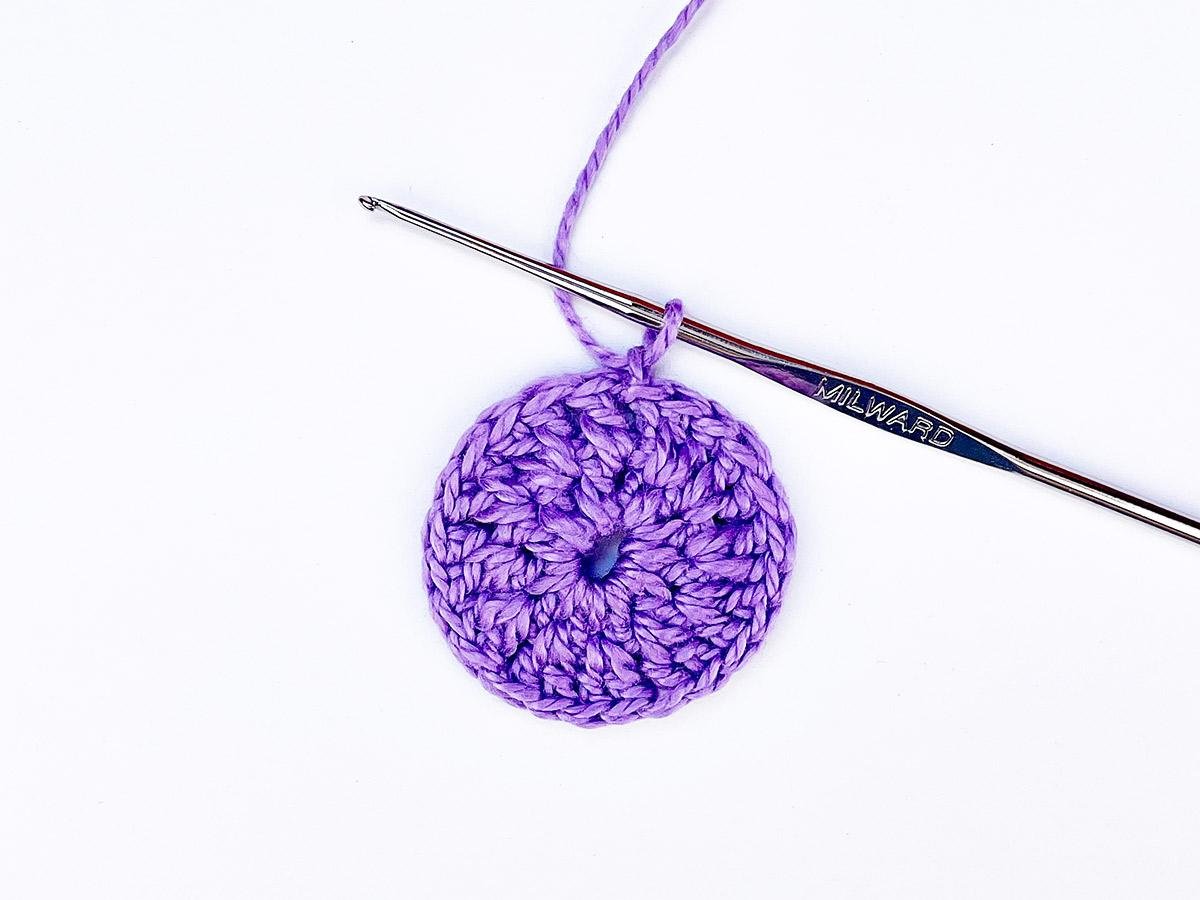 Comece fazendo um círculo com 5 cor e no final, faça um 1 pb para fechar o circulo