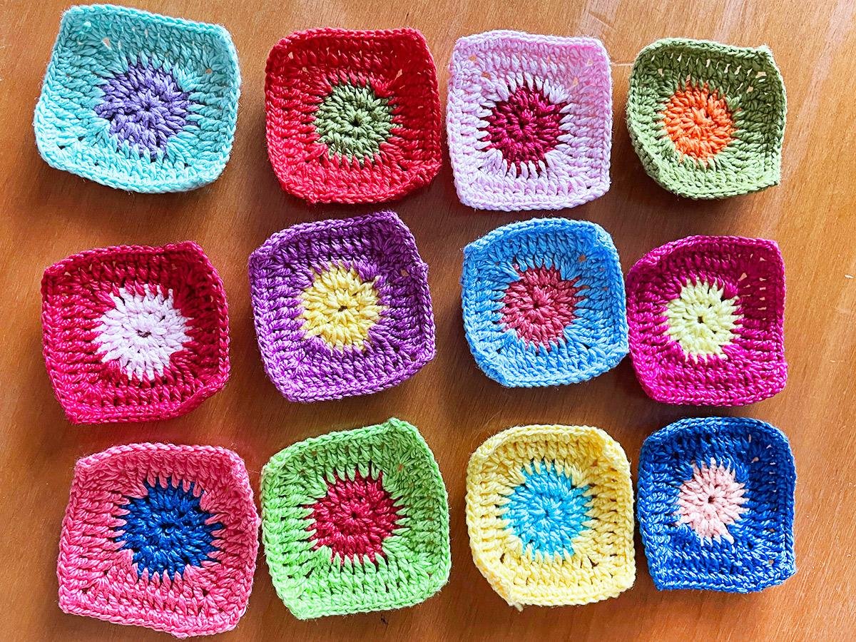 Faça 24 quadrados nas cores de sua escolha. Aqui você vai encontrar vários modelos e cores para se inspirar