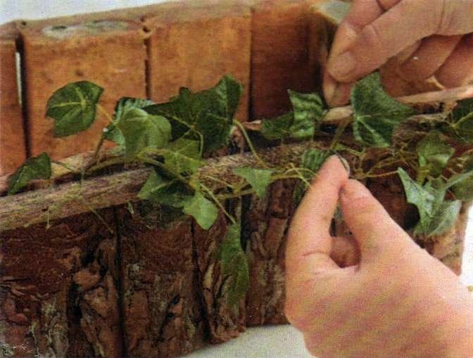 - Prepare a base: Enrole as hastes de hera ao redor da cesta ou cachepô, prendendo-as com hastes de arame para garantir firmeza e volume.