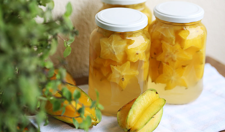 Meus pais tinham o hábito de fazer visitas a parentes quando éramos pequenos. Ele nos colocava no fusquinha, sempre impecavelmente limpo, e lá íamos nós visitar a tia Leonor em uma cidade perto. Na casa dela, havia uma divisória entre a sala e a cozinha, coberta de compotas, conservas e doces de frutas. Aquele colorido e a diversidade de legumes, de frutas e de temperos me fascinava. A mais linda era a carambola com suas estrelas amarelas. No entanto, nunca entendi por que ela não abria as conservas. Algumas já estavam com uma cor estranha, por isso não deviam estar boas para consumo.