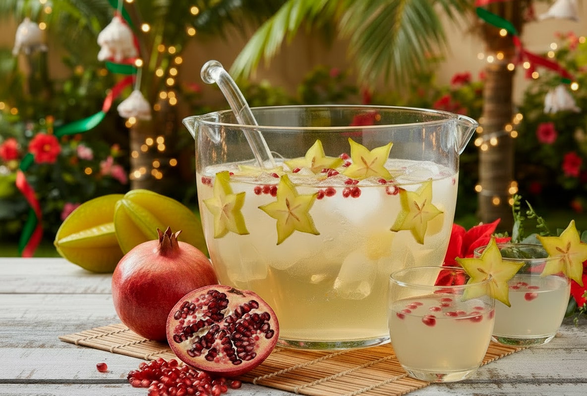 - Na hora de servir, corte a carambola em fatias finas para formar estrelas e coloque em uma jarra.