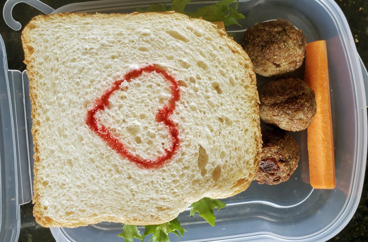 Mas, curiosamente, o que mais ficou guardado na memória da minha filha não foram as bolachas. Foram os sanduíches enfeitados. Eu caprichava: corações, carinhas felizes, palavrinhas de carinho, tudo desenhado com ketchup. Aquilo virava atração no recreio. Os amiguinhos faziam fila para ver “qual era a arte do dia”.