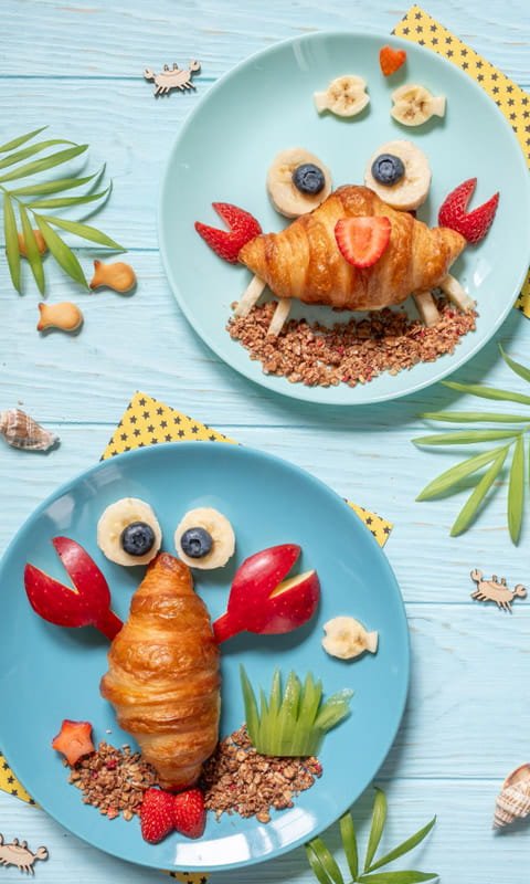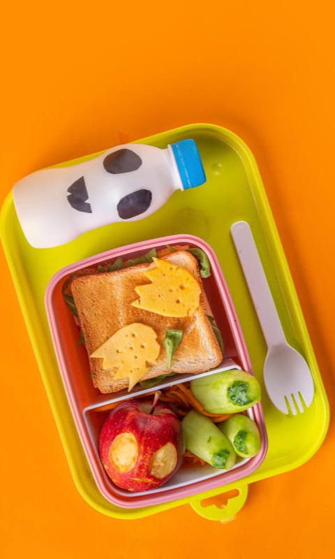 Maçã, banana, uva sem sementes, melão, melancia ou manga vão muito bem em potinhos. Para deixar tudo mais convidativo, vale usar garfinhos infantis — pequenos detalhes que transformam a fruta em atração na lancheira.